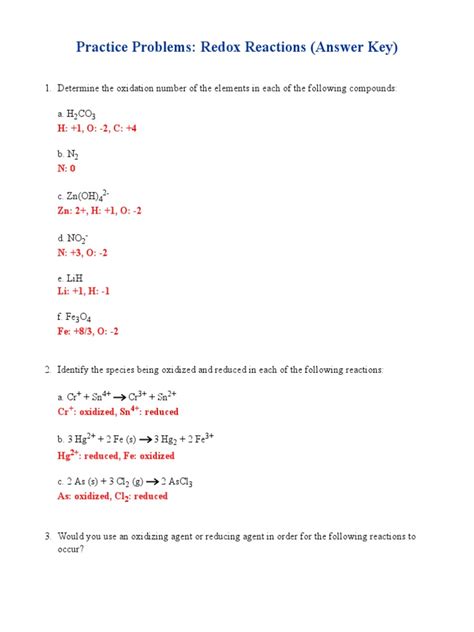 Download Redox Reaction Problems With Answer Key Doc