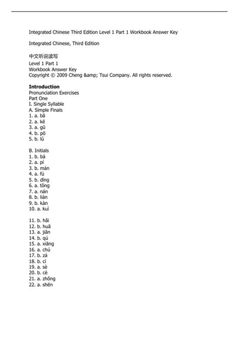 Read Online Level 1 Part Integrated Chinese Work Answers Answer Key Doc